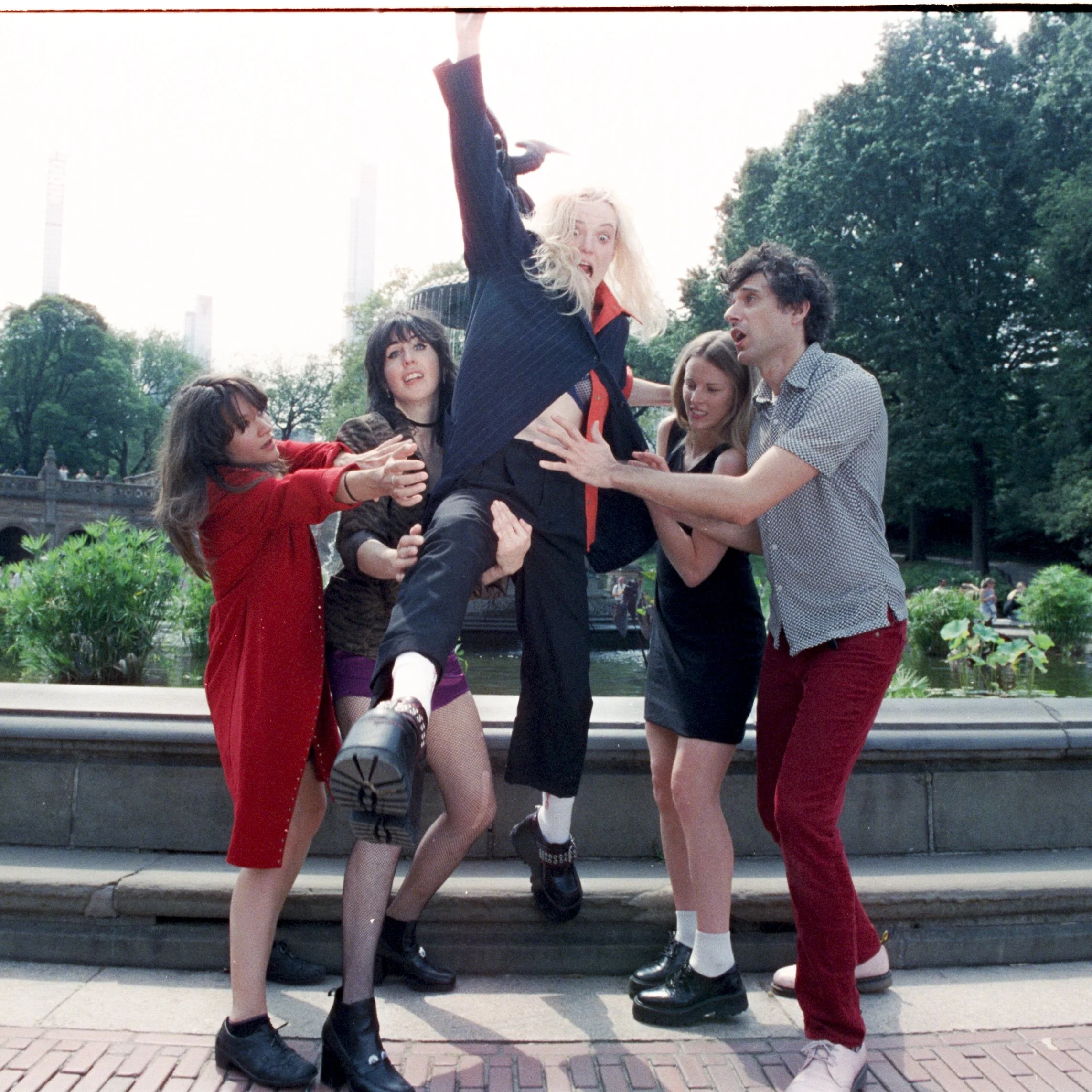 During the next three years, four of the five folks who had climbed in that van without much notice, Gammill and Thiessen included, continued to climb atop any stage or into any living room space that would have them. Their charisma was clear in their slashing riffs, their call-and-response vocals, and their tricky drum-and-percussion tandem. When they released their thrilling debut, 2021’s Audio Drag for Ego Slobs, NME dubbed them one of New York’s most exciting new names—not bad for a band that, three years earlier, didn’t have one. Beck soon touted them as his new favorite group and remixed a track; they soon toured with the likes of Idles, Sleaford Mods, and Yard Act.